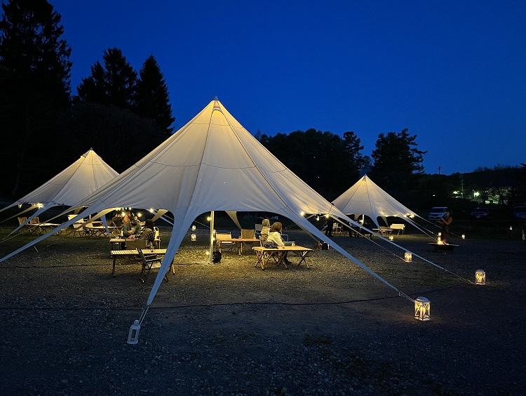 長野市街地から車で約30分、長野県飯綱町の飯綱東高原にあるオートキャンプ場。約80区画のサイトに加えて、玉ねぎ型のテントにおしゃれギア一式、お食事、薪割り体験などが一式セットになった新プラン「プレミアムキャンプ」も誕生! 周辺アクティビティも充実し、徒歩で「むれ温泉 天狗の館」に行けるのも魅力。夏や週末の夜には憩いスポット「森のBAR」もOPEN。
