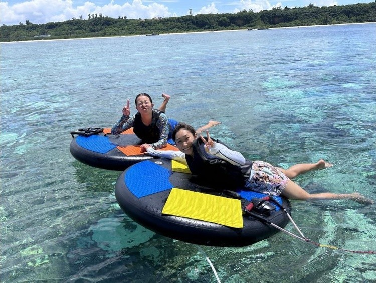 【今帰仁・古宇利島】座って滑れる新感覚アクティビティ、ディスクボードとウェイクボードのどちらか1点と最新バナナボートなどがセットの特別プラン