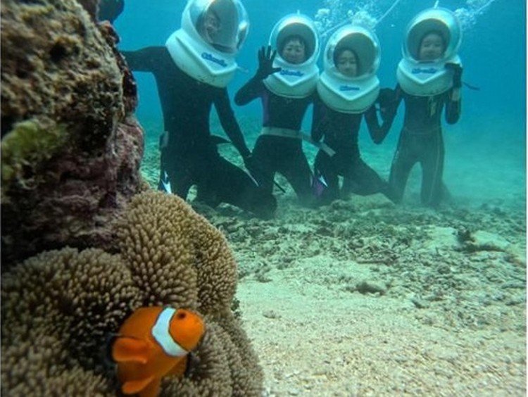 《石垣島で海中散歩!》ボートで行くシーウォーカー、顔が濡れない、泳げなくても安心、女性にもおすすめ!(送迎無料&写真データプレゼント)