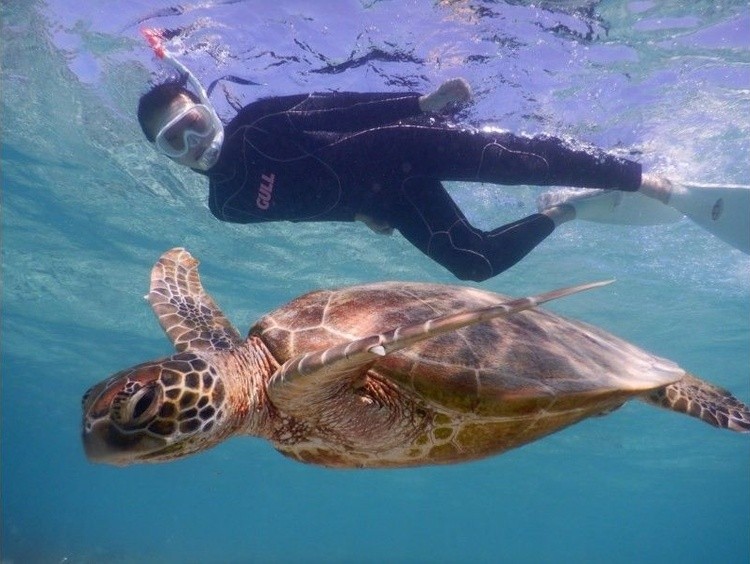 沖縄・宮古島・新城海岸 ウミガメと泳ぐ感動体験!宮古ブルーの海でシュノーケリングツアー
