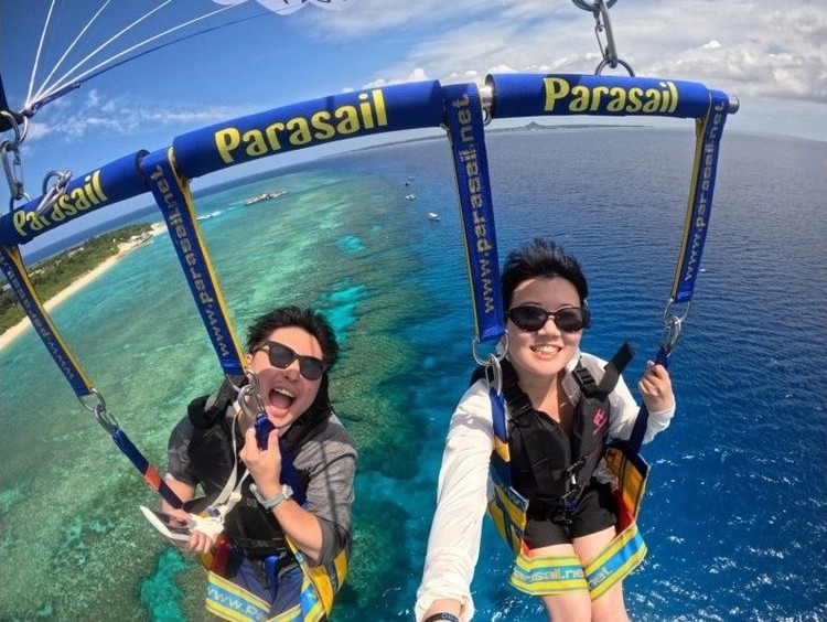 ウミガメが棲む瀬底島周辺でパラセーリング!&バナナボートで行くシュノーケリング